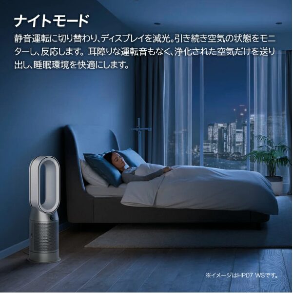 HP07はナイトモード搭載で、運転音を抑えつつLEDディスプレイも減光。寝室で使っても音や光が気になりません。静音設計も進化しているので、赤ちゃんや音に敏感な方にもおすすめです。
