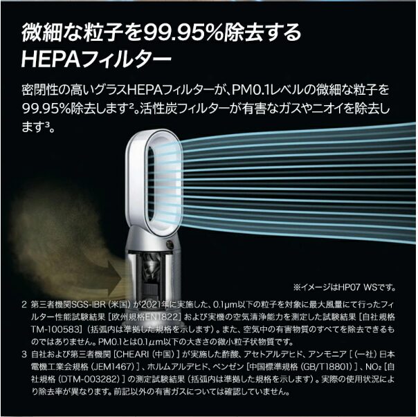HP07は最新のHEPAフィルターに加えて活性炭フィルターも搭載。これにより、PM0.1レベルの微細な粒子だけでなく、ニオイや有害ガスも強力に除去します。さらに、密閉性が高く、フィルター交換も簡単になっています。