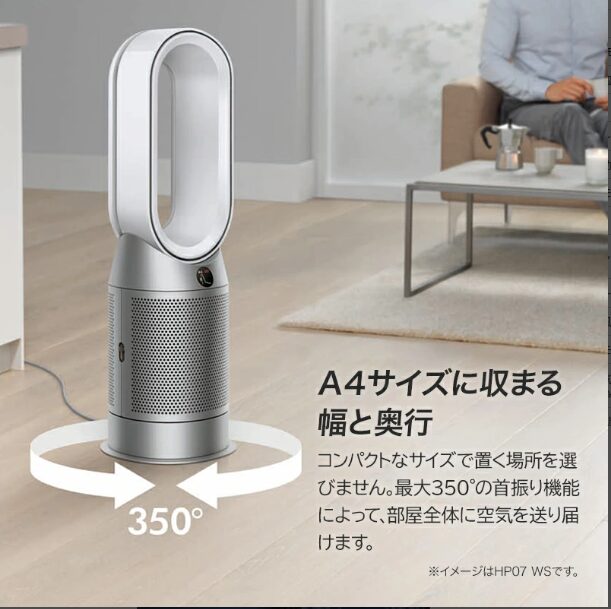 HP07はモデルによって最大350度までの首振りが可能。部屋全体にまんべんなく風を届けたい方には大きなメリットです。