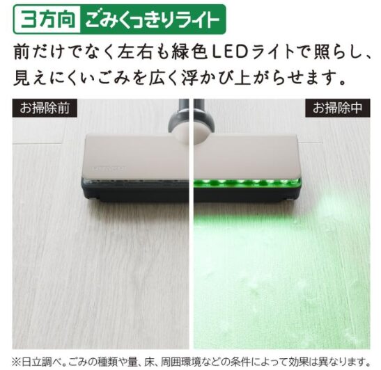 暗い場所や家具の下でもゴミやホコリがしっかり見えるので、掃除の満足度がぐっとアップ!
