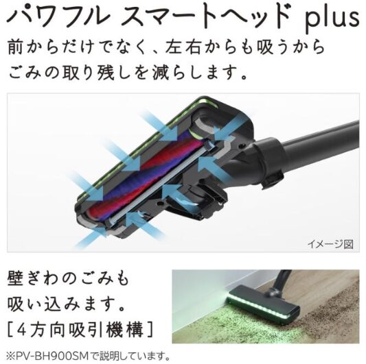 PV-BL50Mは「パワフルスマートヘッドplus」を搭載し、前後だけでなく左右にも吸引口がある4方向吸引仕様です。