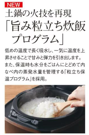| 炊飯プログラム | 「旨味粒立ち炊飯プログラム」搭載 | 「旨味粒立ち炊飯プログラム」なし |